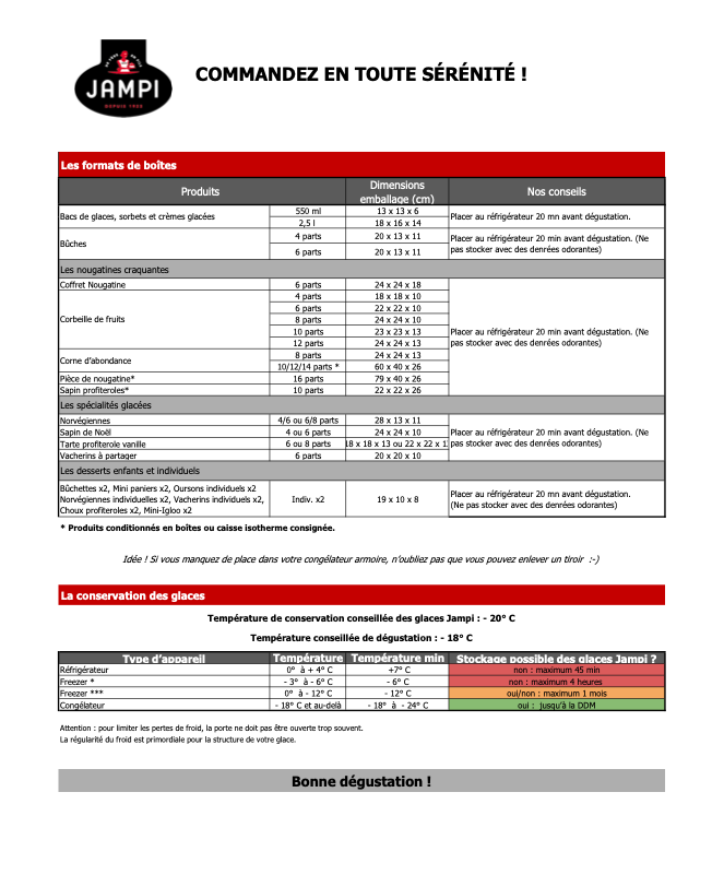 Taille des boîtes – spécialités glacées de fêtes 2024